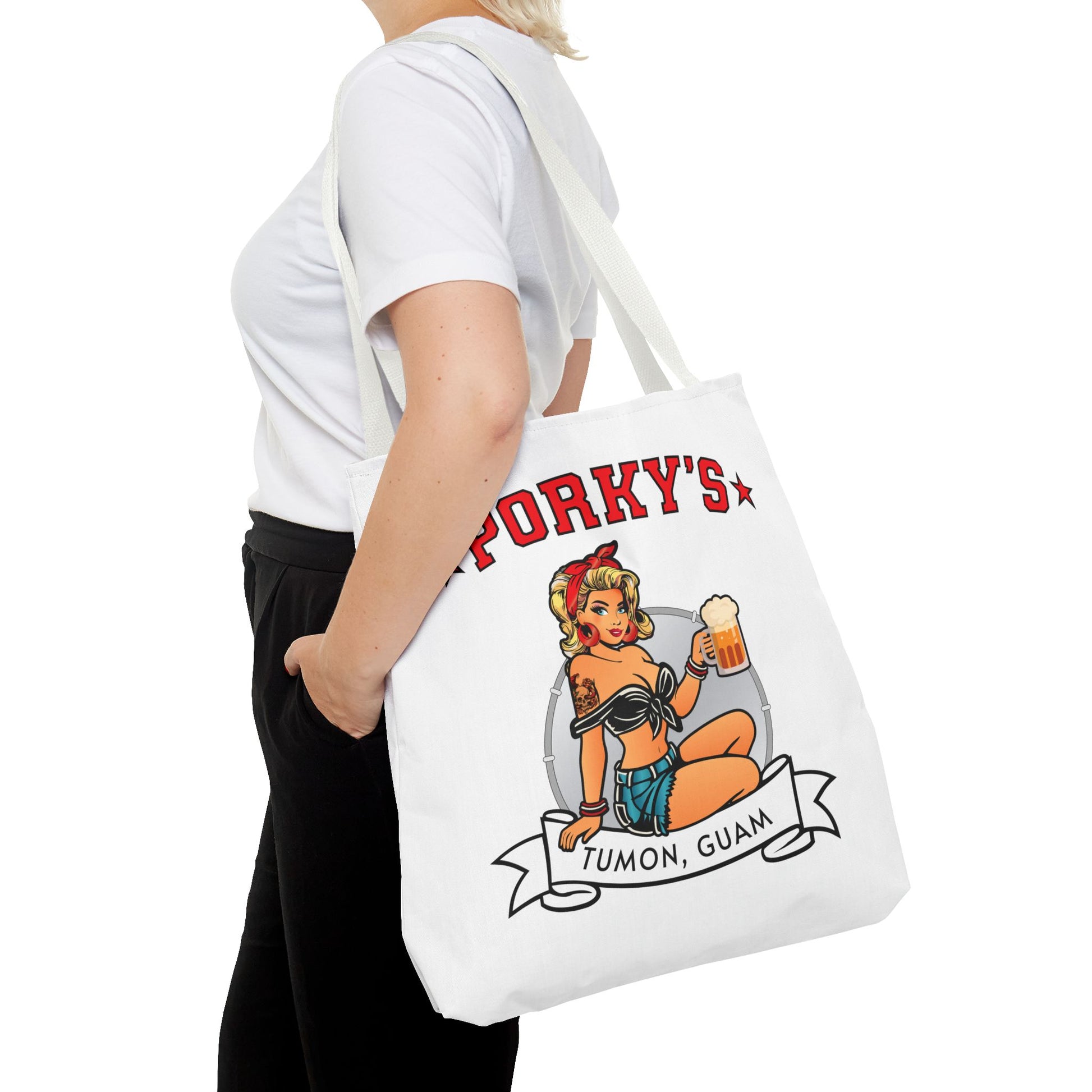 (New Porkys Pin Up) Retro Pin-Up Style Tote Bag - Porky's Tumon, Guam